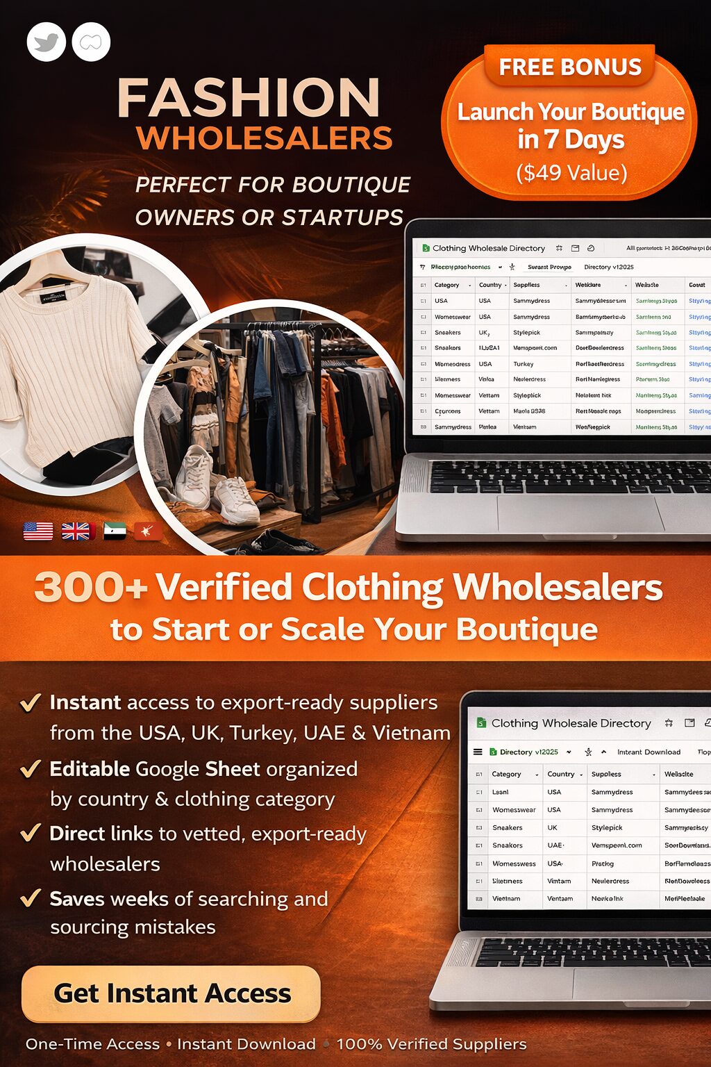 Instant access to export-ready fashion suppliers from the USA, UK, Turkey, UAE & Vietnam — vetted and organized for serious business owners.